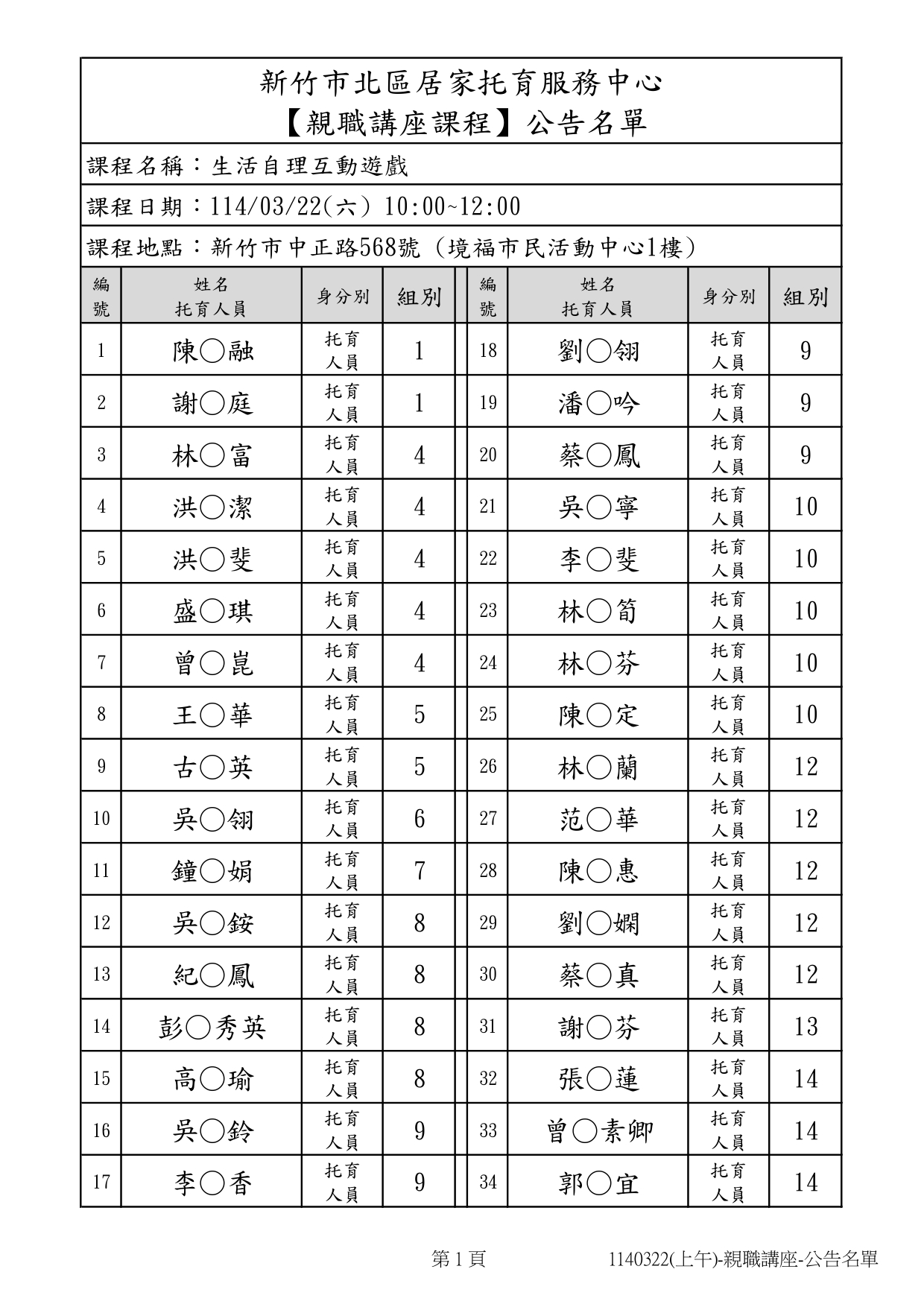 1.請務必點選網頁下方”藍色箭頭”以確認【1140322(下午)親職講座公告名單】。