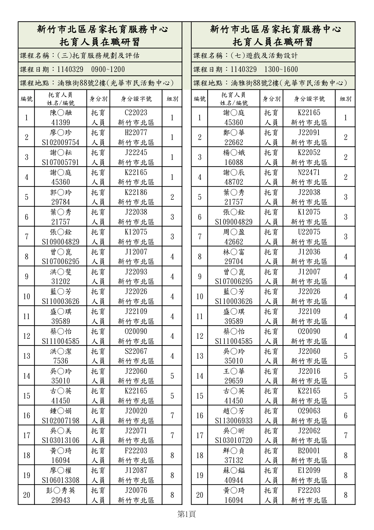 1.請務必點選網頁下方”藍色箭頭”以確認【1140329在職研習上課名單】,身分證為前四碼+後二碼。