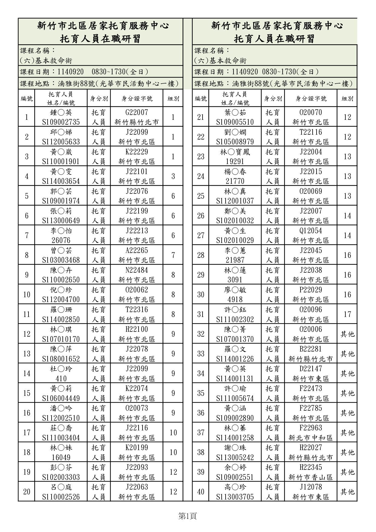 1.請務必點選網頁下方”藍色箭頭”以確認【1140920在職研習上課名單】,身分證為前四碼+後二碼。