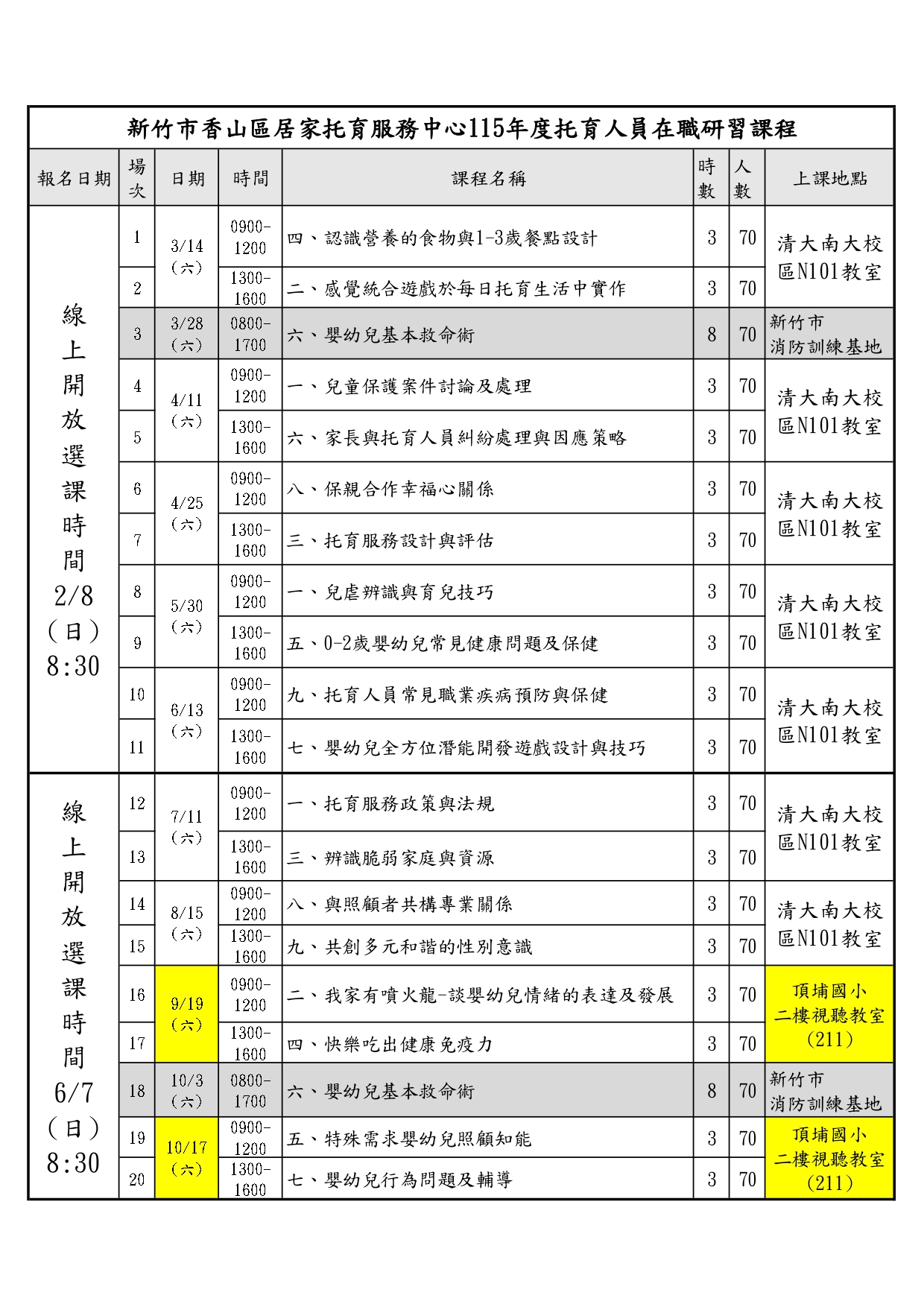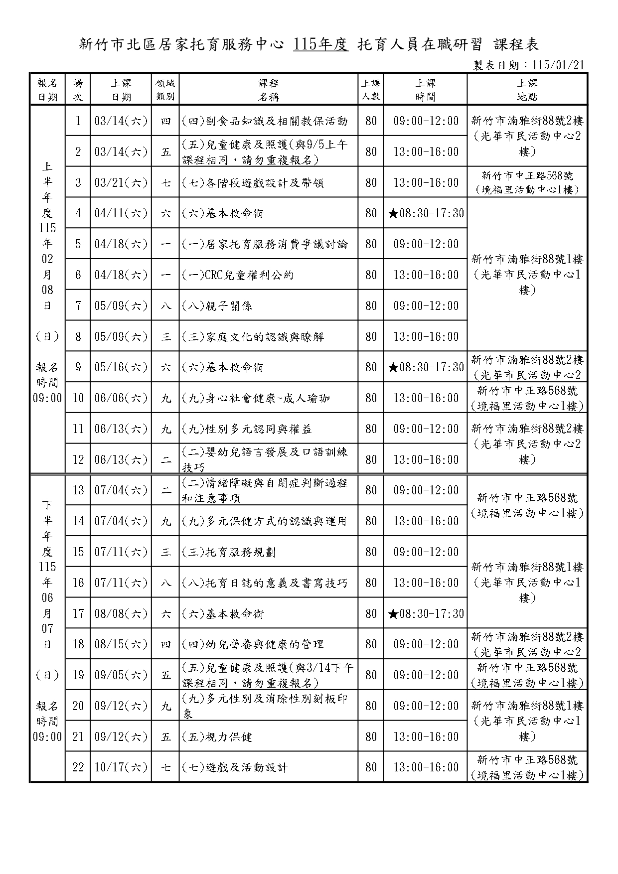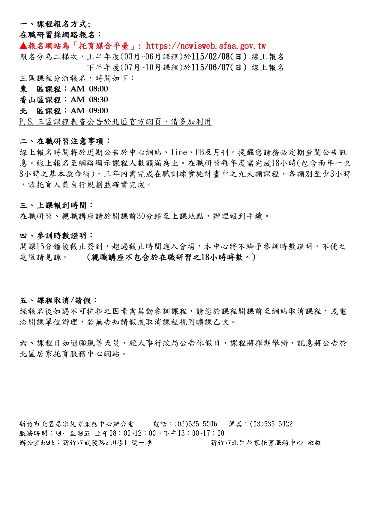 在職研習上半年度於115/02/08 (日)網路報名,採分流上網報名,托育人員皆可跨區報名
