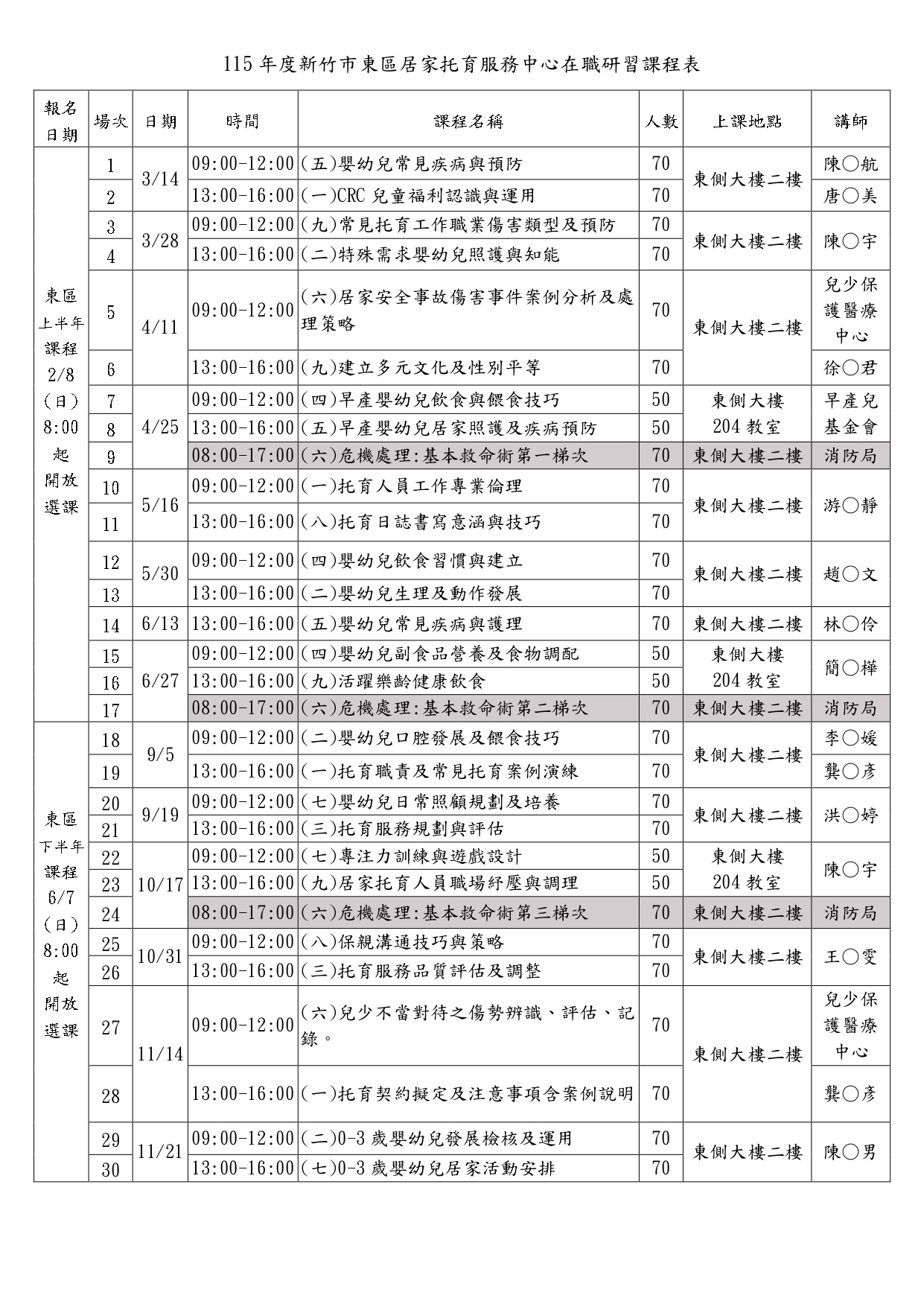 附件: 115年北區在職研習課表(官網公告版). 、東區研習課程表、香山區研習課程表