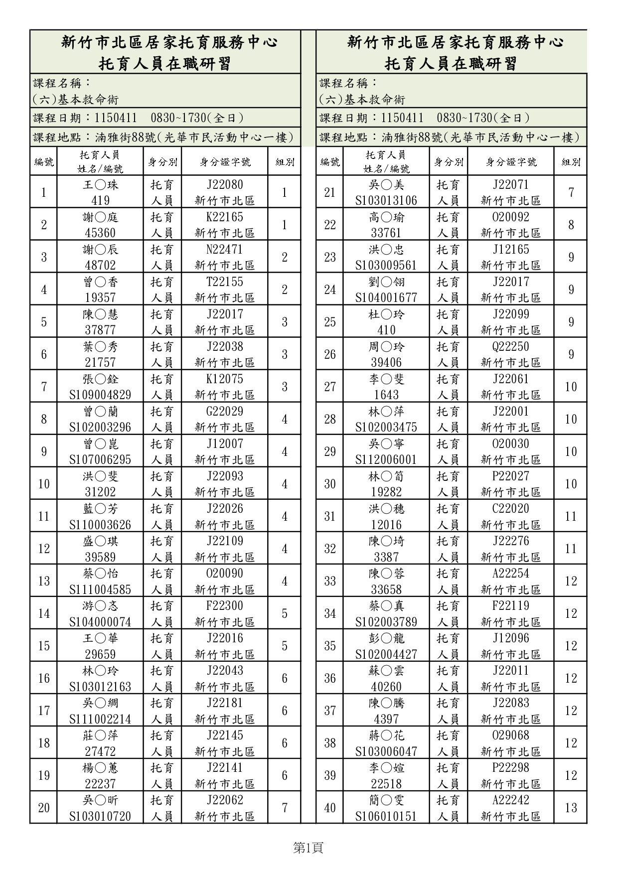 6.課程異動或如遇颱風等天災,經人事行政局公告休假日,課程將擇期舉辦,訊息將公告於北區居家托育