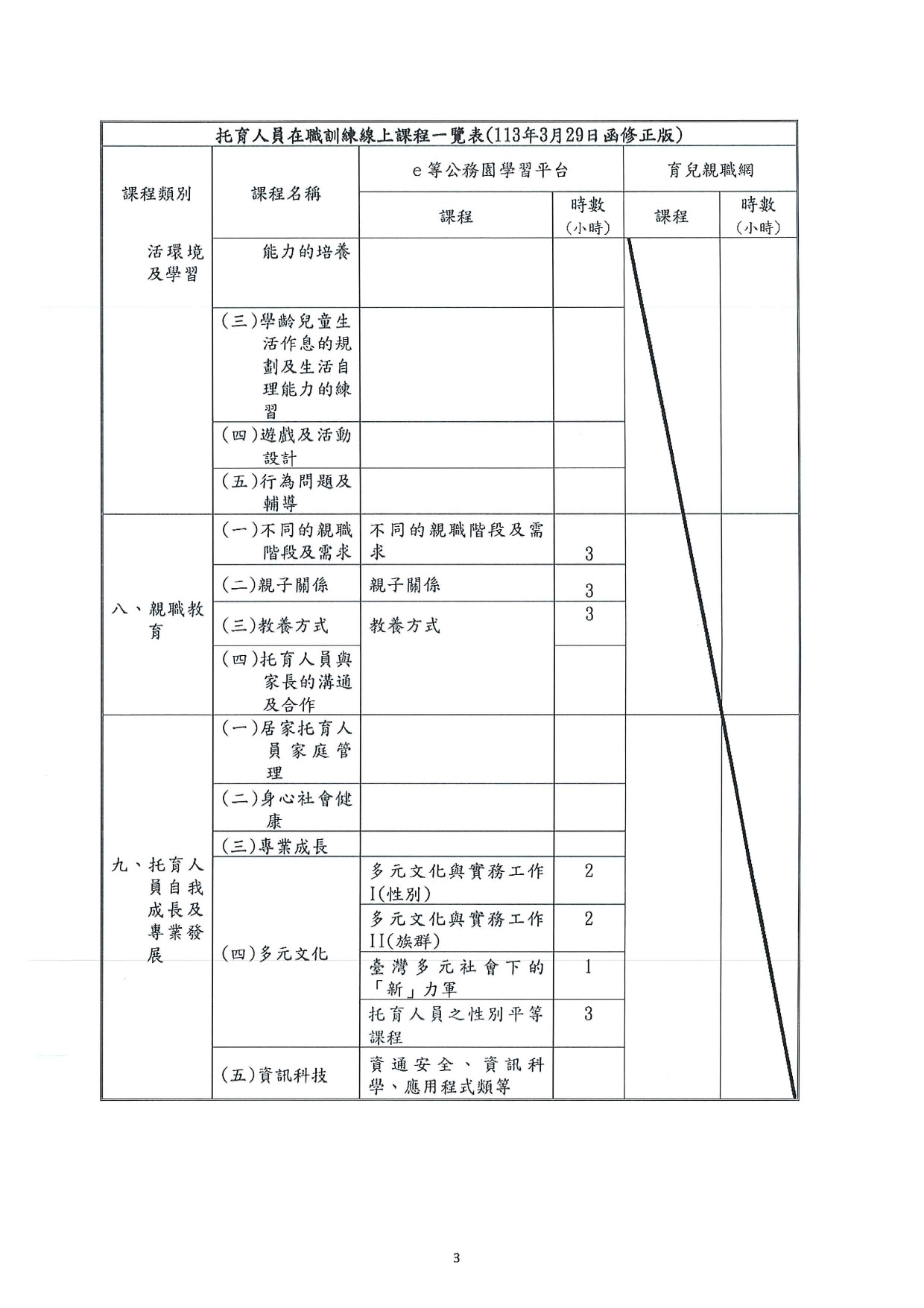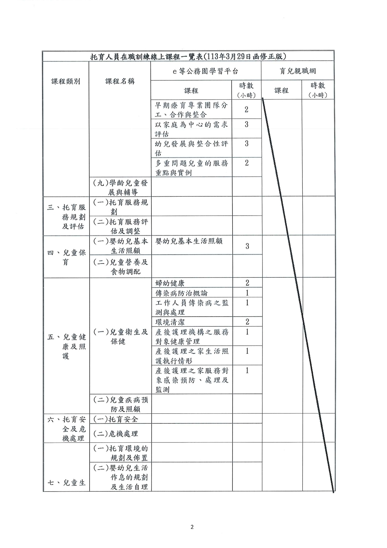 依據衛生福利部社會及家庭署會議決議,115年度托育人員在職研習時可以採認線上課程6小時,惟課程表更改如附件。