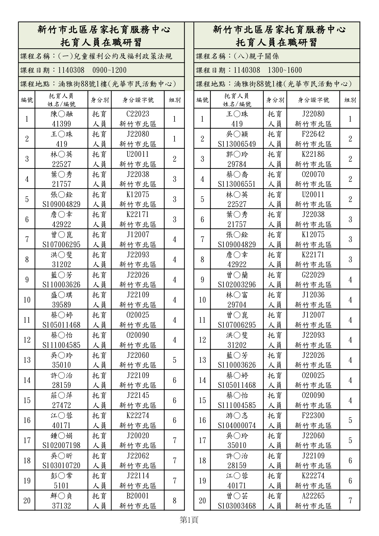 1.請務必點選網頁下方”藍色箭頭”以確認【1140308在職研習上課名單】,身分證為前四碼+後二碼。