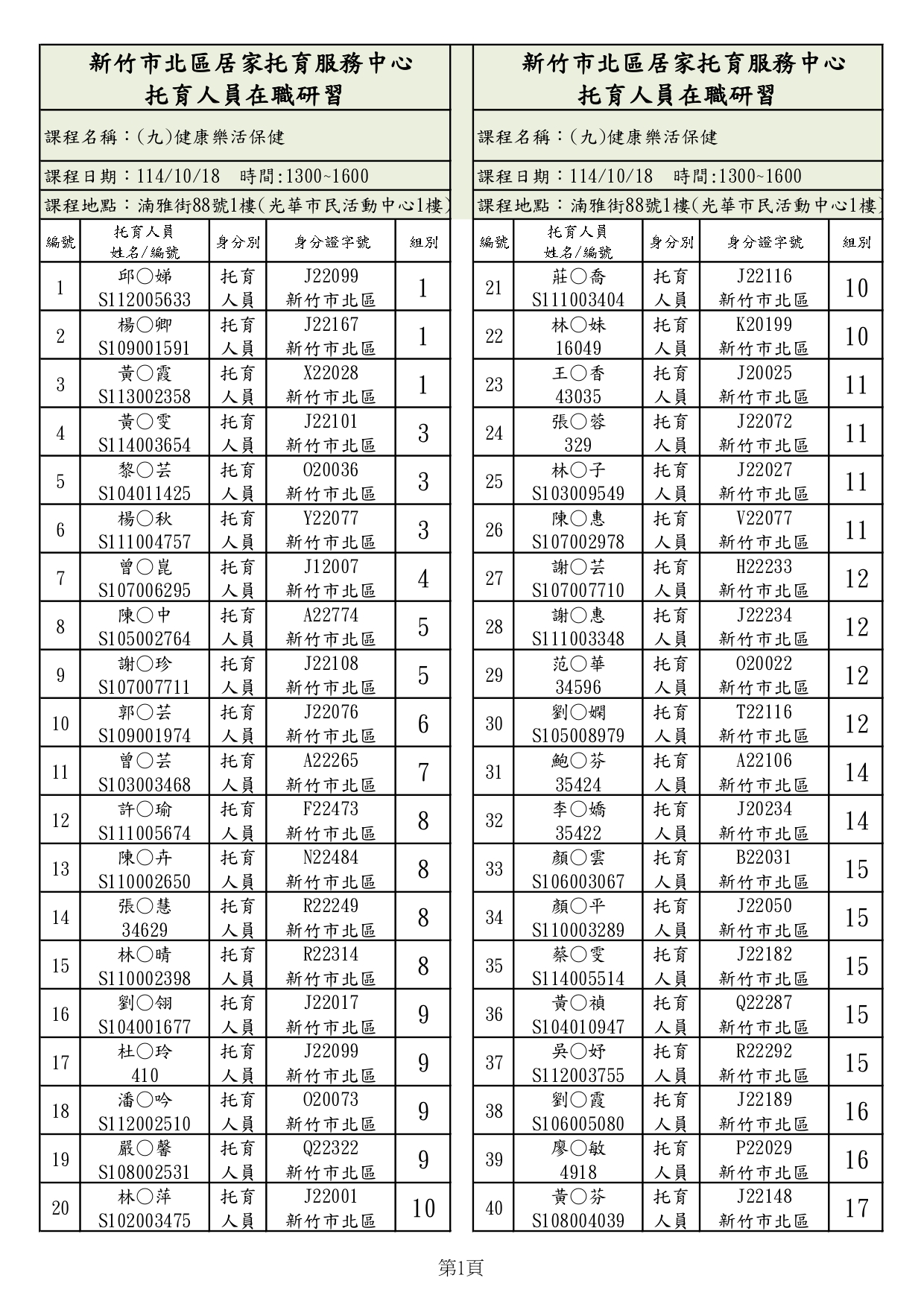 114年10月18日(六)公告課程名單(實體課程)