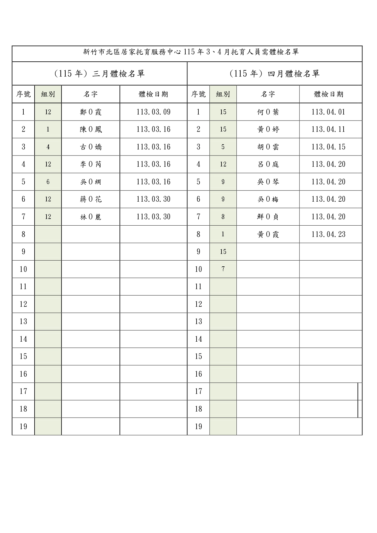 請托育人員務必於體檢日期〝〞確實前往辦理體檢