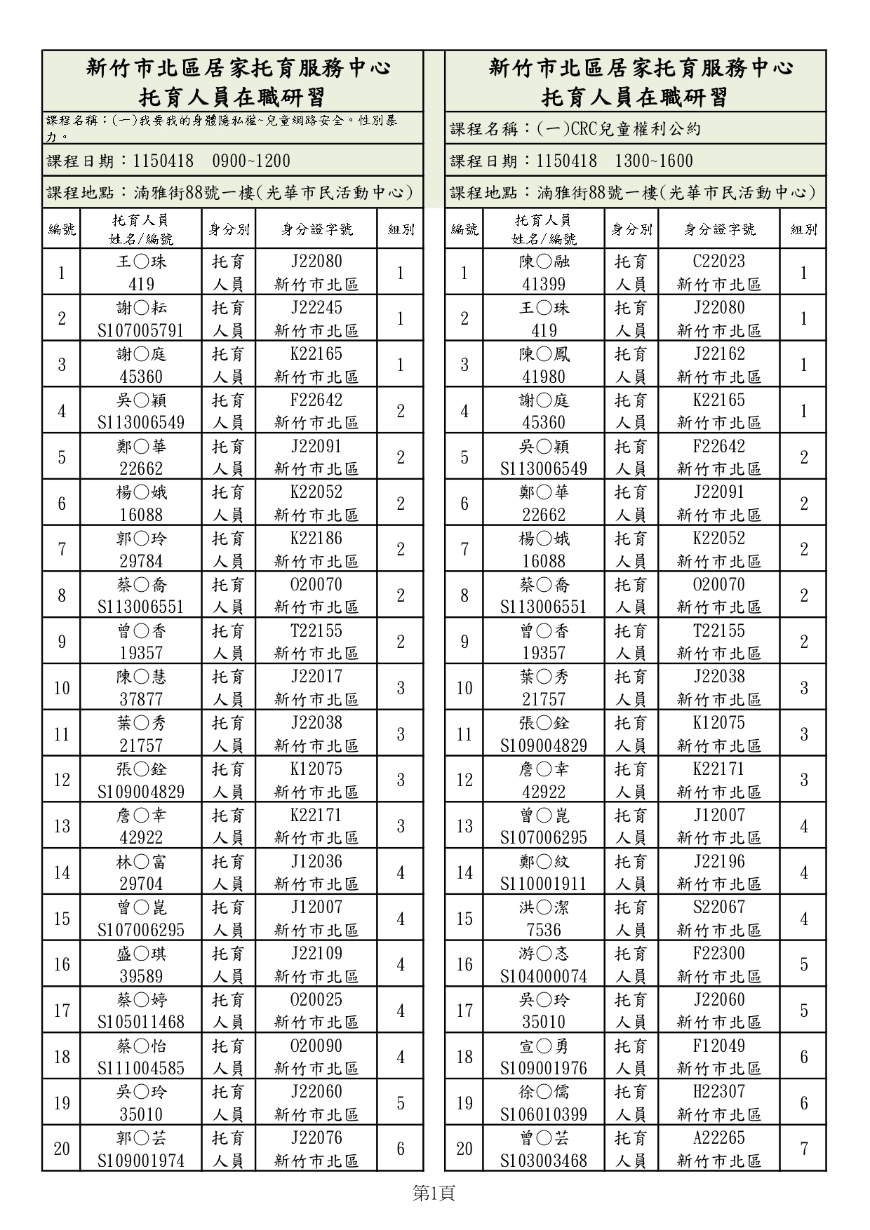6.課程異動或如遇颱風等天災,經人事行政局公告休假日,課程將擇期舉辦,訊息將公告於北區居家托育